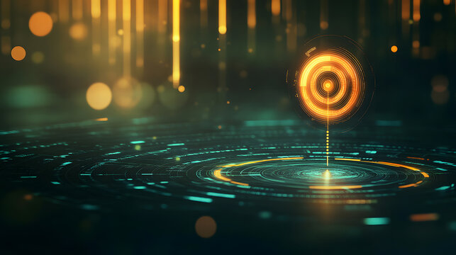 A glowing arrow shoots through a digital space toward a glowing target.
