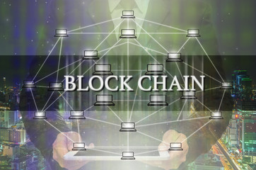 Blockchain technology futuristic and smart city background, electronics money, digital wallet with encrypted block