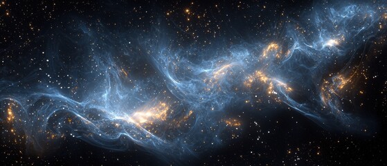 Swirling blue mesh waves dance in a cosmic black digital landscape