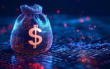 Abstract data processing on digital mesh background