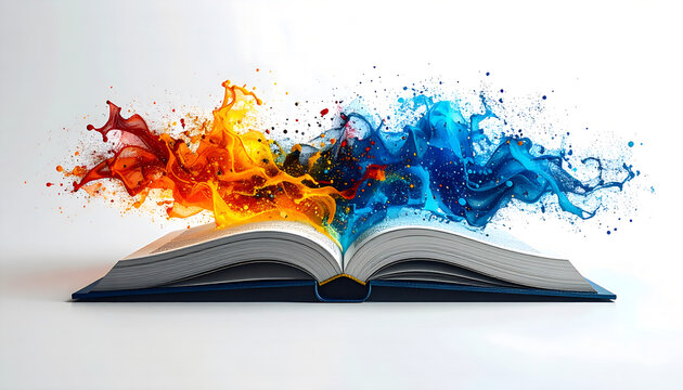 Open book morphing into a laptop screen, seamless transition between paper and digital, knowledge and innovation, modern elearning concept