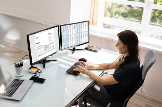 Accountant Using E Invoice Software At Computer