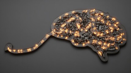 A digital representation of a brain with glowing circuits, highlighting the concept of artificial intelligence (AI) through intricate designs and luminous elements.