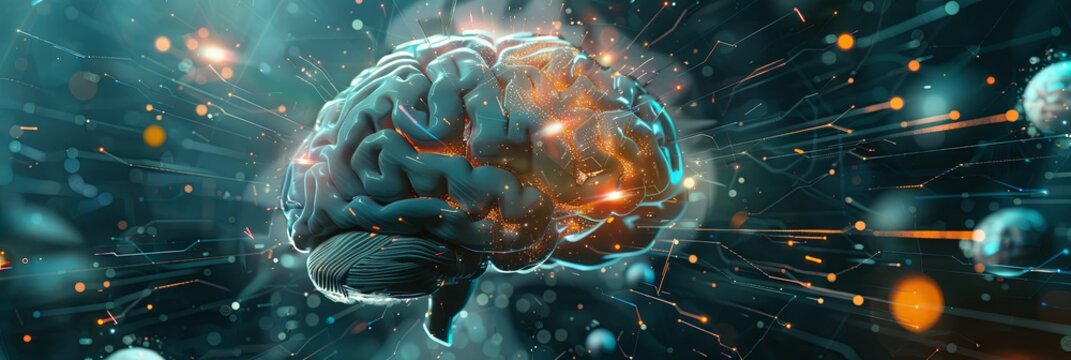 Futuristic digital brain simulation with neon effects