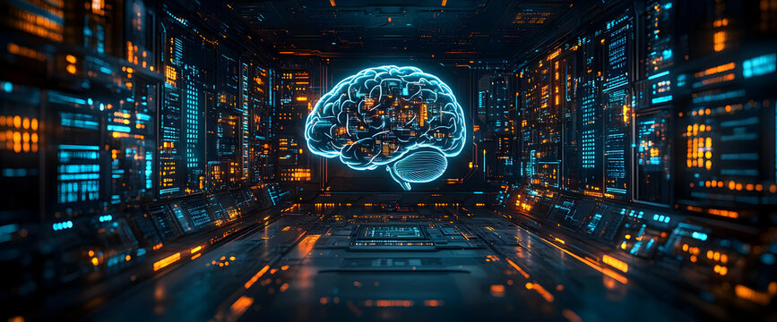A digital brain with intricate neural connections and advanced technology interface