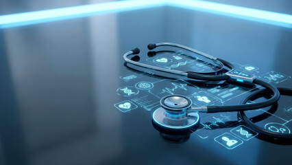Medical Science and Research Laboratory with Digital Healthcare Icons