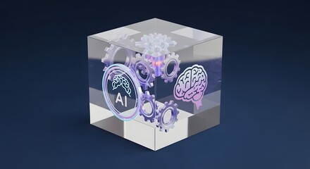 AI integration system with futuristic glowing circuit brain icon floating on hand, representing artificial intelligence, data processing, automation, and technology-driven digital business solutions