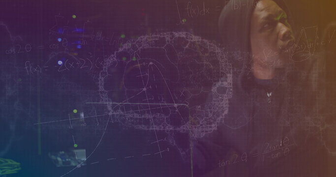Innovative tech enthusiast with digital brain and equations