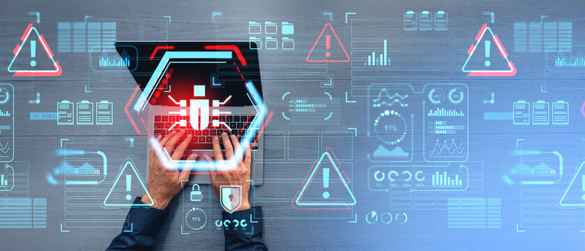 Holographic data analysis concept featuring black spiders on orange grid and binary overlay
