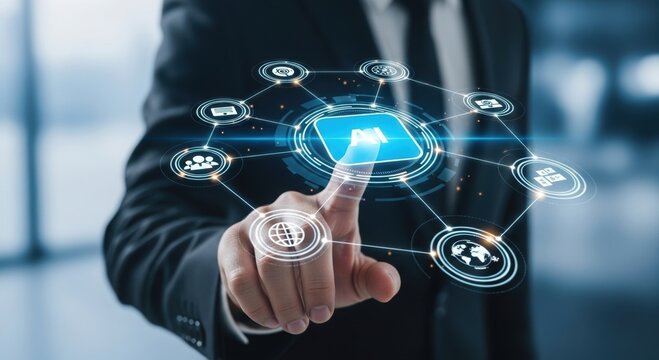 AI Integration Concept: Businessman Interacting with Artificial Intelligence Interface for Automated Solutions and Technological Advancement