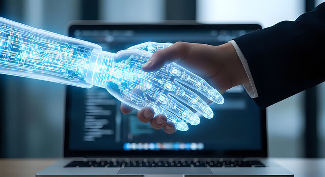 Businessman Interacting with Artificial Intelligence Interface, Modern Technology Concept with Glowing Digital Brain
