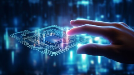 Futuristic cursor with digital circuit board background