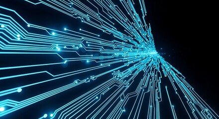 Vibrant Blue Digital Circuit Lines Illustrating Data Transfer and Speed