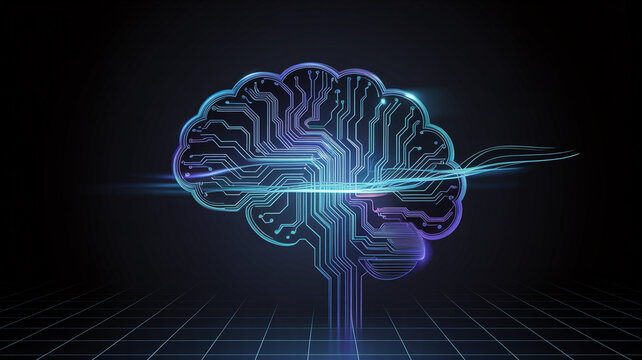Stylized Human Brain Silhouette Formed by Circuit Board Traces and Glowing Lines image photo