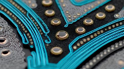 Close-up of digital circuit board design for data processing