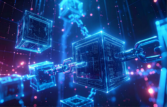 Futuristic digital circuitry with data processing elements on blue background
