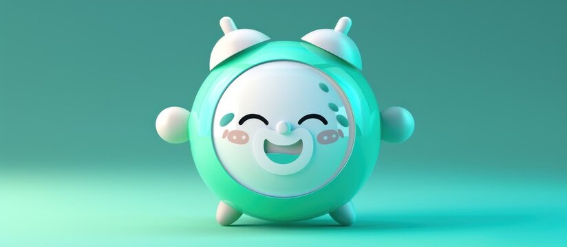 A happy green alarm clock with a smiling face.