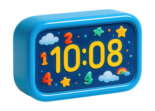 A vibrant digital clock with playful animations for a child's room or play area.