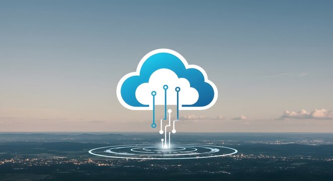 A glowing cloud computing symbol hovers over a digital cityscape, symbolizing the interconnectedness and vast potential of cloud technology.