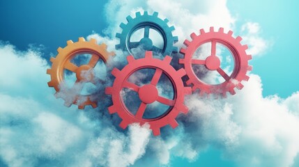 Interconnected gears in the clouds, a visual representation of cloud computing and data synchronization
