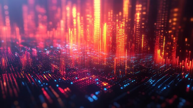 Digital financial data visualization on cityscape