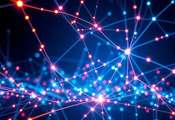 Abstract glowing nodes and lines forming a complex network, futuristic digital grid,  communication,  machine learning