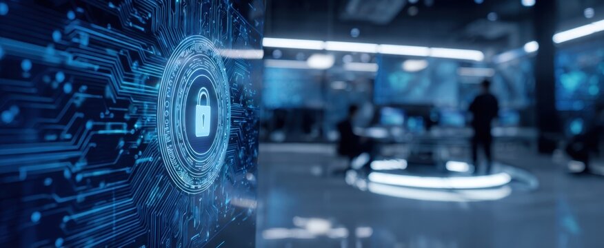 Futuristic digital security with virtual padlock interface