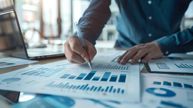 Visualizing data trends cloud-based analytics modern office infographic graphics bright workspace aerial view data interpretation and insights