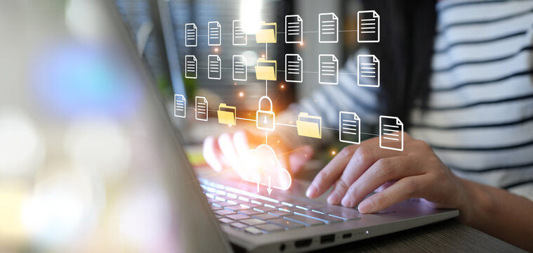 Cloud technology and Data storage concept, Concept of Exchange information and data with internet cloud technology.FTP(File Transfer Protocol) files receiver. File sharing isometric.rring documents..