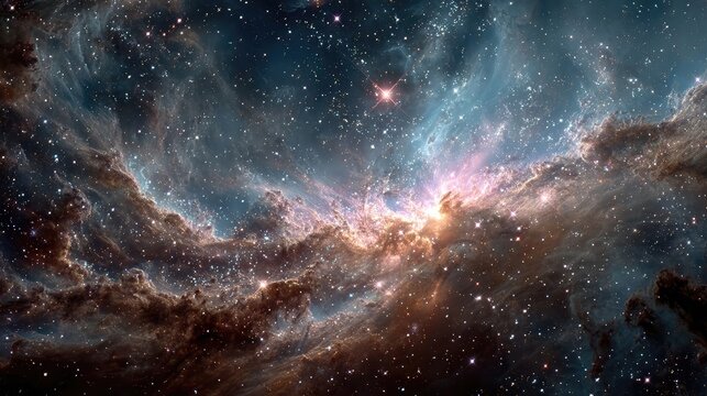 A digital painting of an interstellar horizon with vibrant amber star clusters