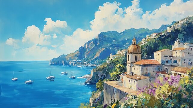 painting Amalfi Coast, italy, europa, landscape, coast, 16:9