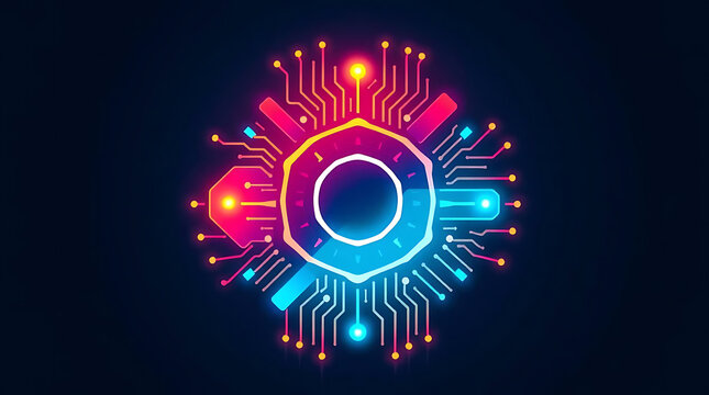 Abstract futuristic banner with circuit board and colorful AI icon on black background vector Illustration of digital technology concept. AI generated