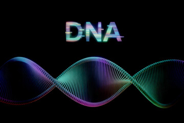 Glowing D N A helix with glitch text molecule genetic