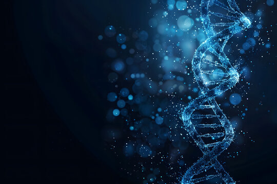 DNA helix on a dark blue background, abstract illustration. futuristic concept