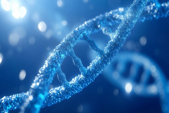 Abstract 3d dna helix structure glowing blue futuristic digital genetic code science background