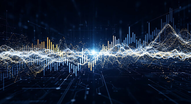 Digital Data Landscape: A mesmerizing digital visualization of data streams, showcasing a dynamic interplay of lines and peaks, representing the complexities of modern technological processes.