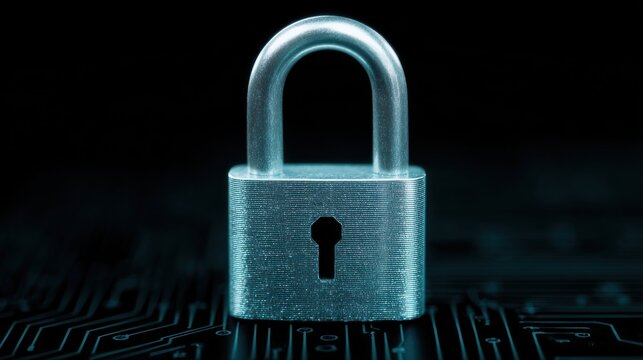 A silver lock with a keyhole sits on a black background