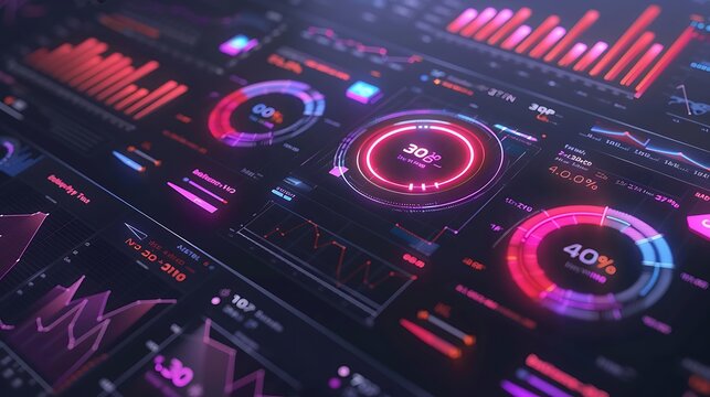 Holographic neon digital globes displaying data and analytics on futuristic hud interface