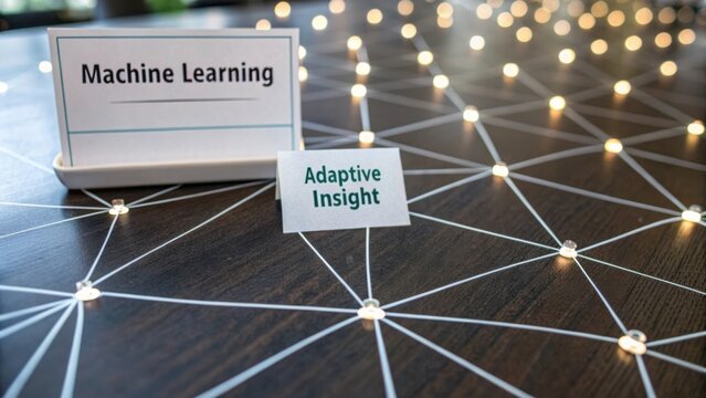 Innovative Concept of Machine Learning with Adaptive Insight Displayed on a Creative Networking Background with Lights
