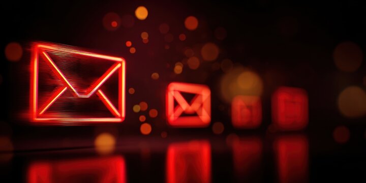 Colorful Envelopes Float in an Abstract Dark Background, Creating a Dynamic Visual of Communication and Connection in a Digital Age
