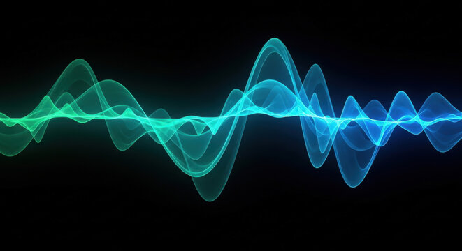 Abstract digital interface with glowing icons and neon lines in a dark blue background design