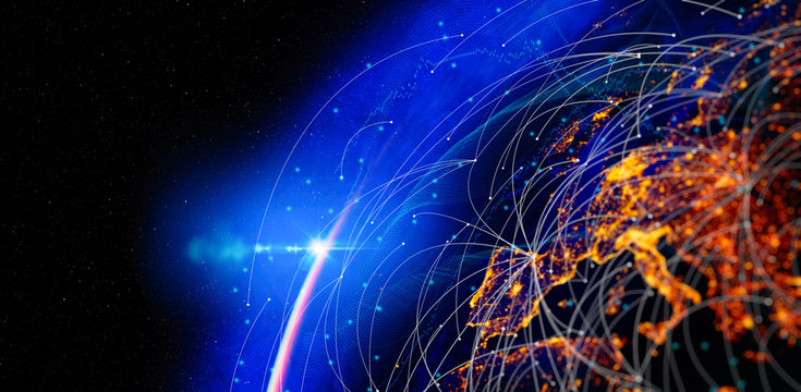 Communication technology for internet business. Global world network and telecommunication on earth cryptocurrency and blockchain and IoT. Elements of this image furnished by NASA
