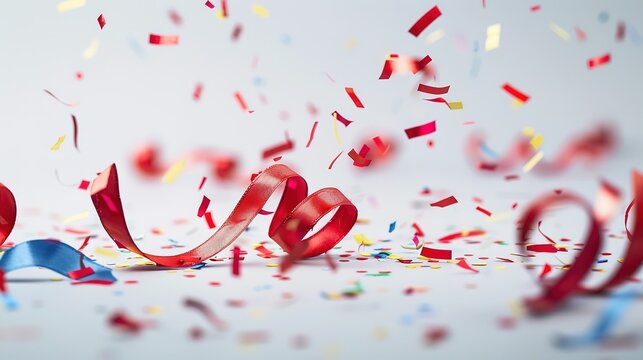 Colorful confetti and ribbons falling, celebrating a special occasion.