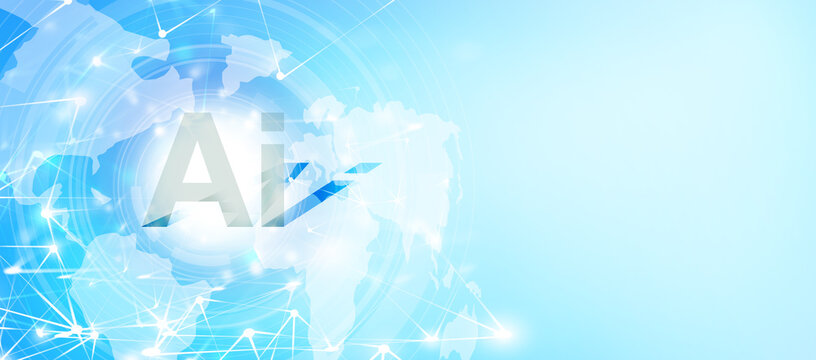 Artificial intelligence or ai glowing on  world map background, Artificial intelligence or ai taking the world concept