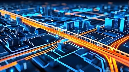 An animated city map on a digital screen, with glowing lines connecting 5G towers and highlighting the network's expansion, 5G networks rollout, blurred background, with copy space