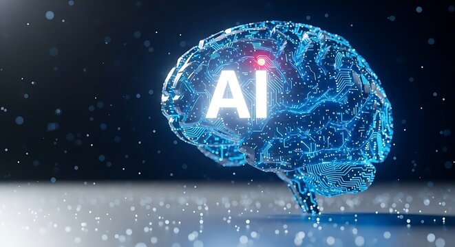 Artificial intelligence brain with glowing connections and ai text