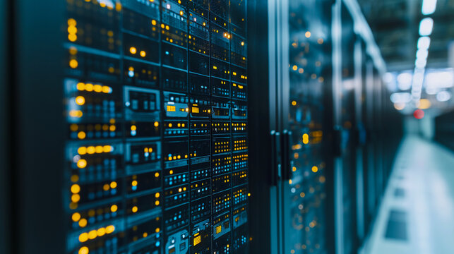 A server room filled with rows of servers emphasizing the critical role of blockchain infrastructure in data management