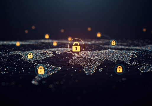 Futuristic data security global network concept