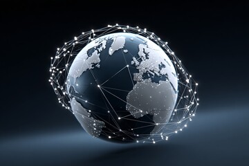 Global network connections visualized as glowing lines and nodes over a detailed earth at night, showcasing digital communication and data transfer across continents. : Generative AI