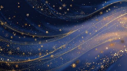 Shimmering gold snowflakes and starry lights in an ethereal digital artwork
